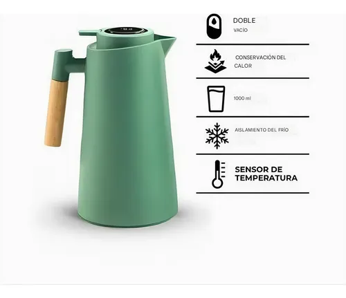 Descripción: •Jarra térmica de 1L con sensor de temperatura. •Es apto para bebidas calientes y frías. •Fabricada con un interior de vidrio que garantiza la conservación de la temperatura hasta 12hs.