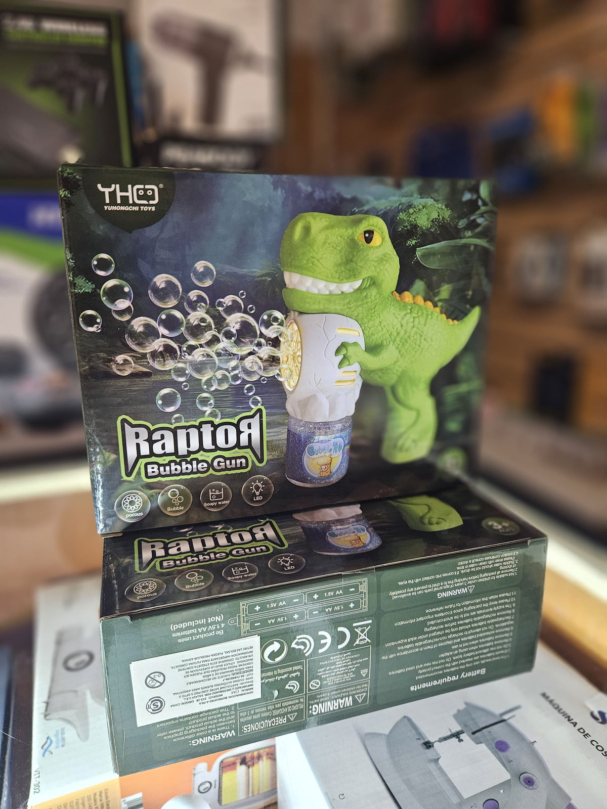 • Pistola de Burbujas con Multisalida que al Presionar el Gatillo Emite un Sin fin de Burbujas al Tiempo que Enciende Luces en el Interior.