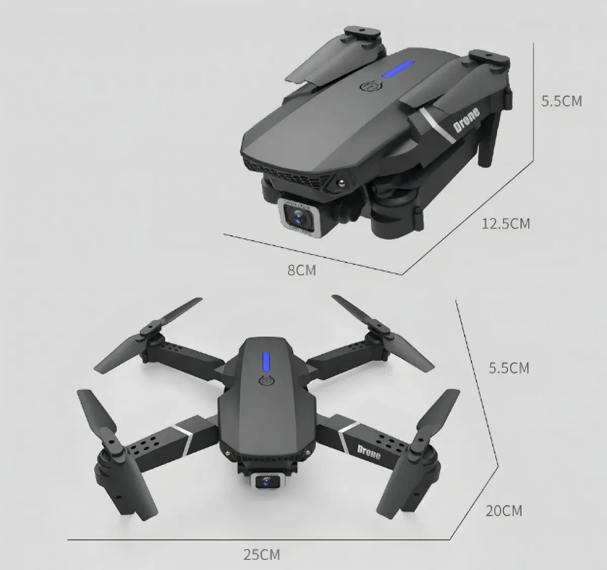 •Incluye 1 batería, que proporciona al dron la potencia suficiente para funcionar. Al final del viaje, se recarga fácil y cómodamente.